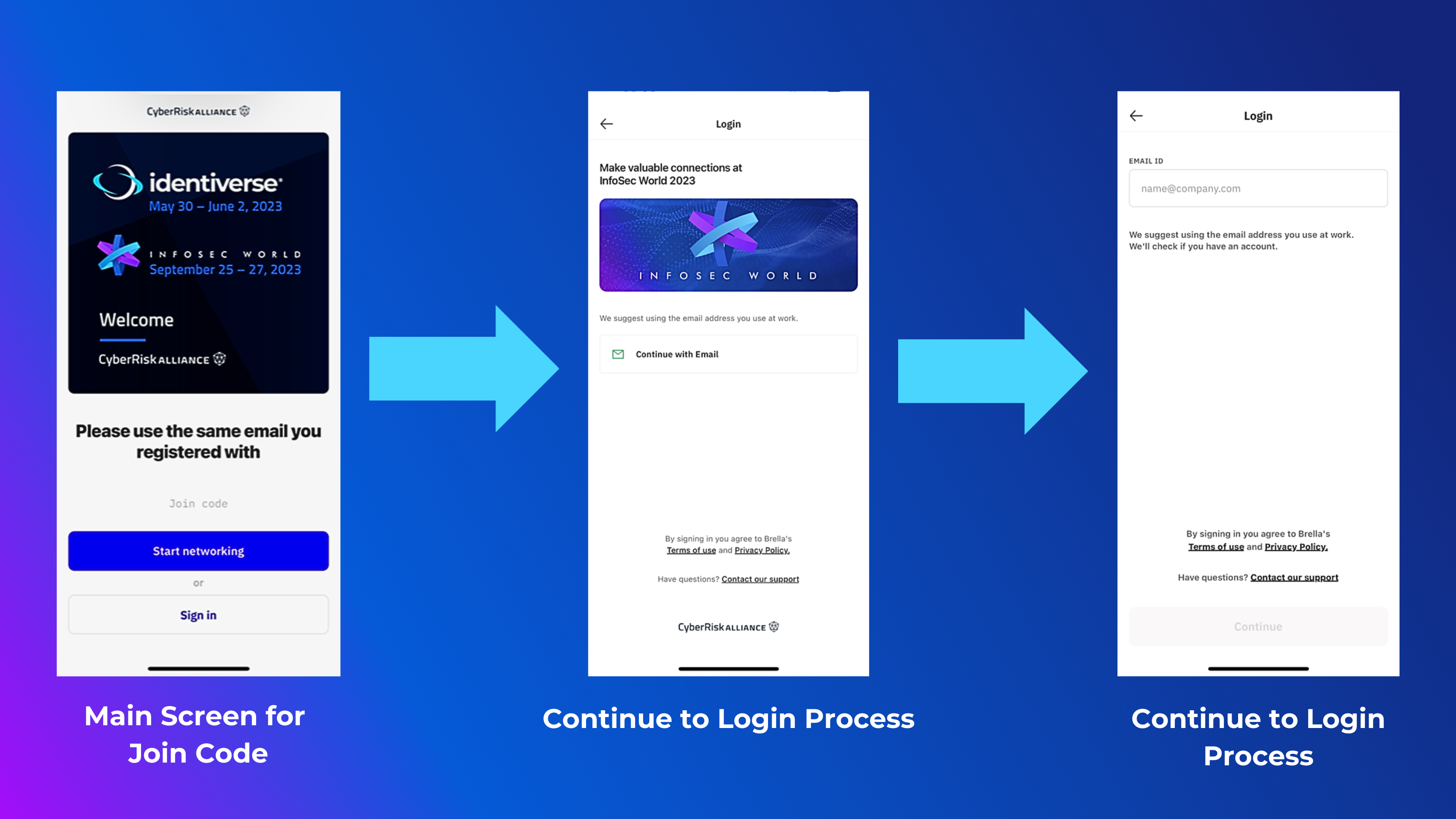 Attendees can access the app via web or the mobile app. If you have already redeemed your join code, please use your app login credentials to access the event via the web. The link to the web app is: https://cyberriskalliance.brella.io/events/